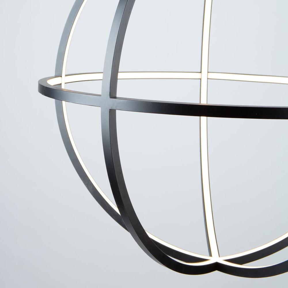 The "Celestial" collection orb is truly unique and stylish. The matte black finish on this double frame is eye catching. Illuminated by bright energy efficient integrated LED, this chandelier would fit in any surrounding, especially in transitional to contemporary settings. Smaller 13.75" size also available.