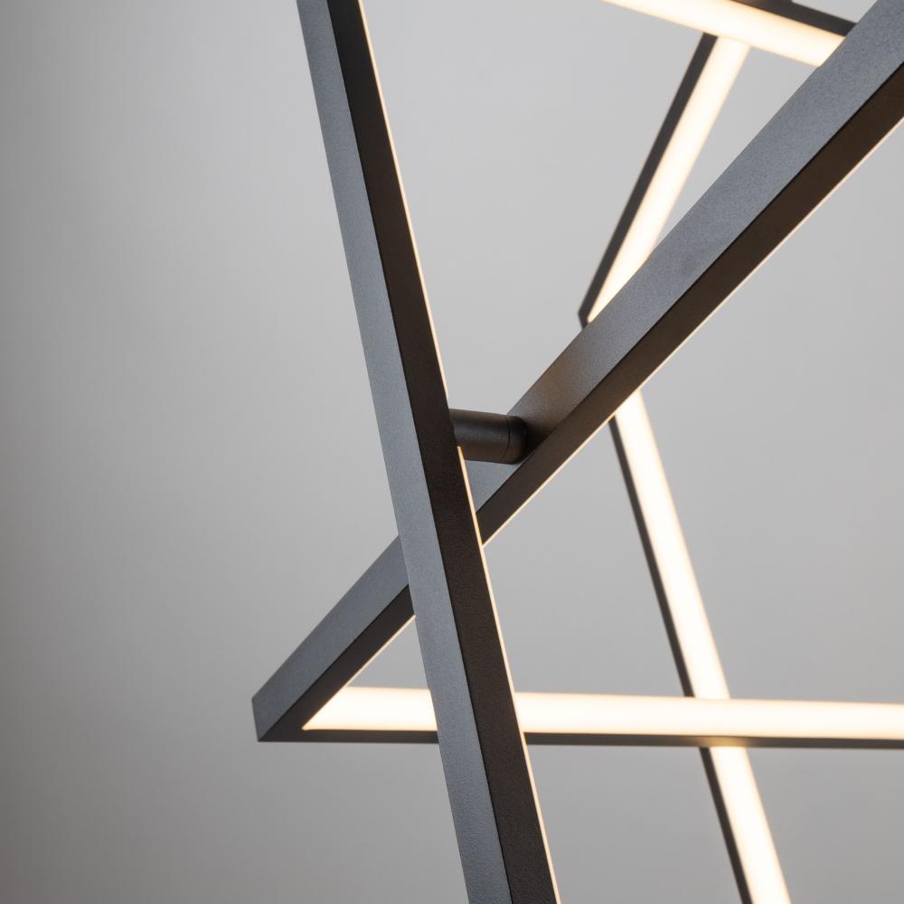 The Geometric "Graymar" pendant is unique because each of the squares can be rotated to your desired position. The frame and canopy are finished in a semi matte black. Each of the squares is illuminated by bright energy saving LED technology. This pendant almost looks like it is floating since it is suspended by thin aircraft type cables. Definitely a "cool" statement piece. Shown here is the 32” diameter version but also comes in a 28” or 20” version. Matching flusmount also available.
