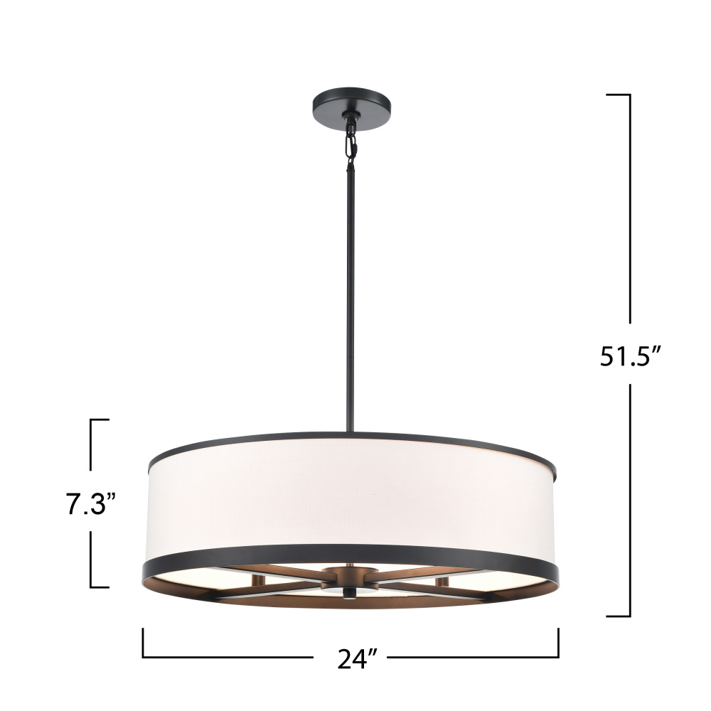 This elegant chandelier from the “High Street” collection, designed by Kevin Kraemer, radiates understated elegance. The hardback linen shade, in a soft eggshell white hue, casts a warm, inviting glow, perfect for elevating any space. Encased in sleek black framing metalwork, the design balances contemporary charm with understated luxury. This model comes with extra rods for any height preference.