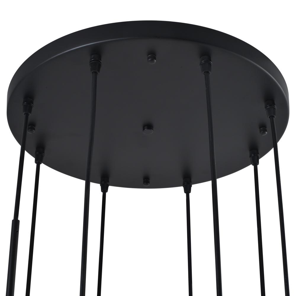 The Crema collection 8 light entry foyer chandelier by Steven Sabados of S&C radiates understated sophistication with its alabaster-style swirl glass, casting a warm, inviting glow. Its sleek black frame is beautifully complemented by brushed brass accents, creating a perfect harmony of modern sophistication and classic charm. Rods included for easy height adjustment to suit different height requirements.