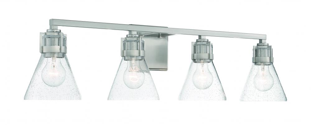 4 Light Bath in Brushed Nickel Finish with Clear Seeded Glass