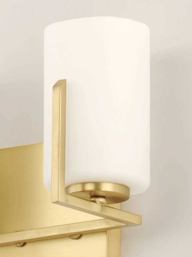 Inspired by the Modernist architect Edward Dart, this collection features straight line frames finished in Satin Brass, Satin Nickel, or Matte Black that support Satin White glass cylinders for a clean and modern look. The frames' ends turn up before t