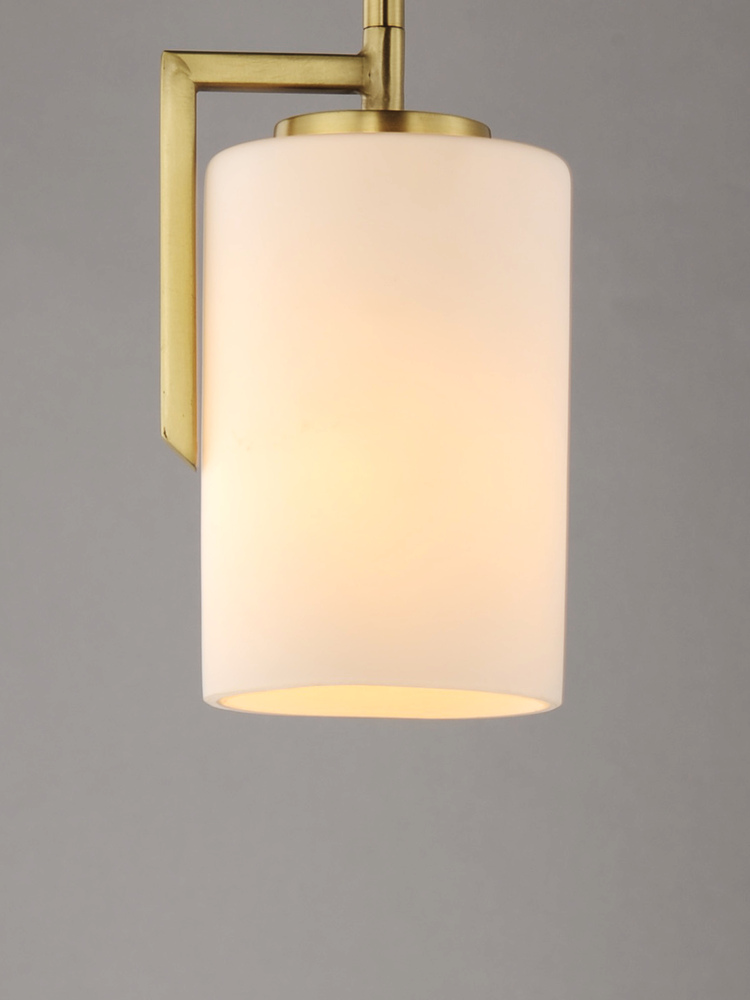 Inspired by the Modernist architect Edward Dart, this collection features straight line frames finished in Satin Brass, Satin Nickel, or Matte Black that support Satin White glass cylinders for a clean and modern look. The frames' ends turn up before t