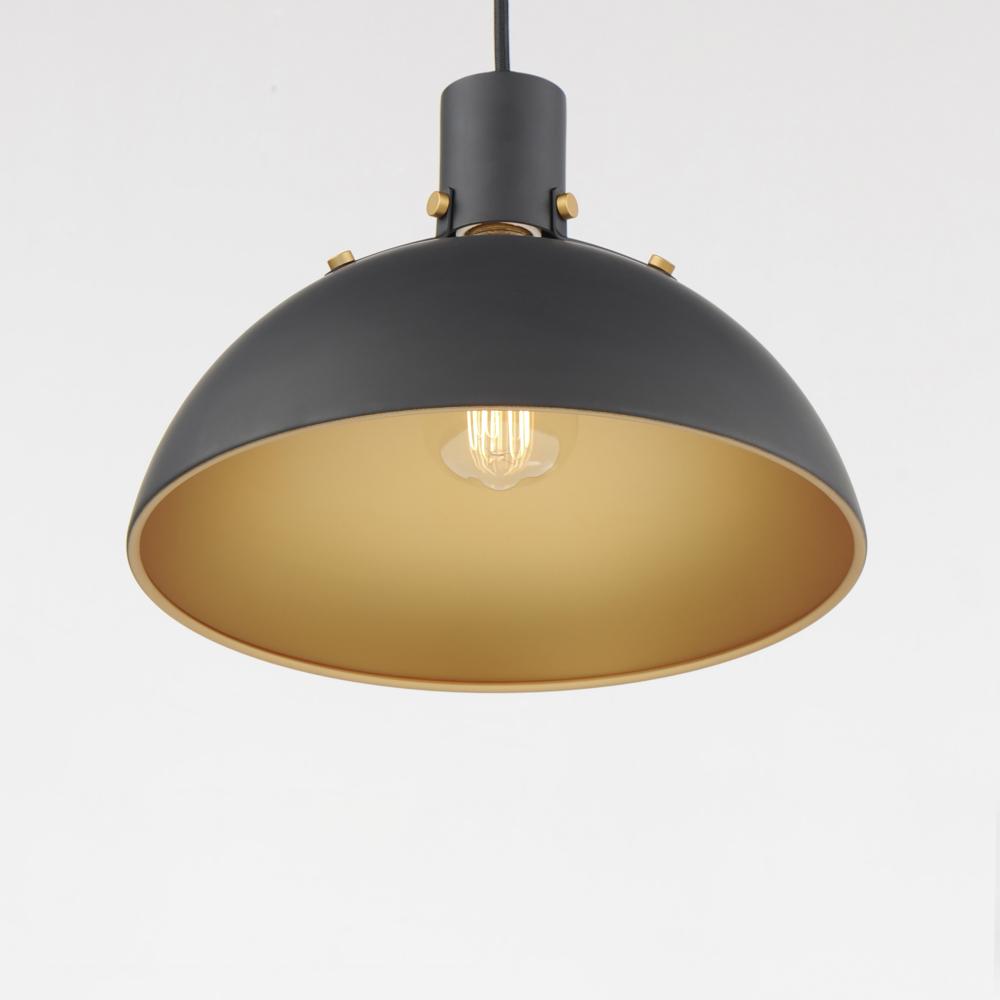Sockets are suspended above a metal spun dome in your choice of Black or White with Gold accents or Satin Nickel with Black accents. A clean and simple approach to modern or transitional lighting, the opening allows light to shine through the opening atop