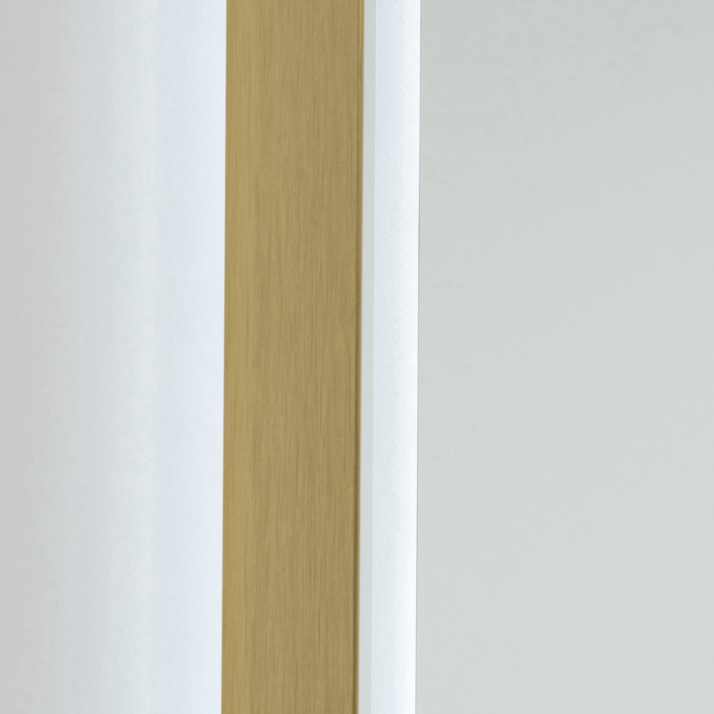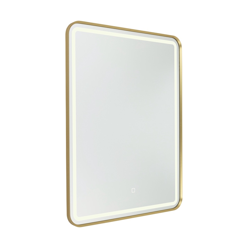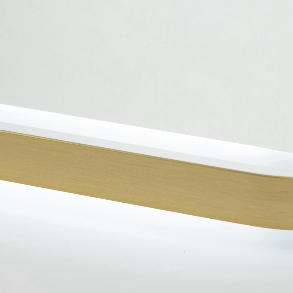 The Reflections collection LED mirror features a sleek design with a rectangular brushed brass frame, seamlessly combining modern functionality with a touch of elegant aesthetics. This mirror has a “Smart Touch Switch” which allows dimming, on/off, and the ability to change the color temperature from 3000, to 4000, to 5000 kelvin. (this mirror can be mounting vertically or horizontally)