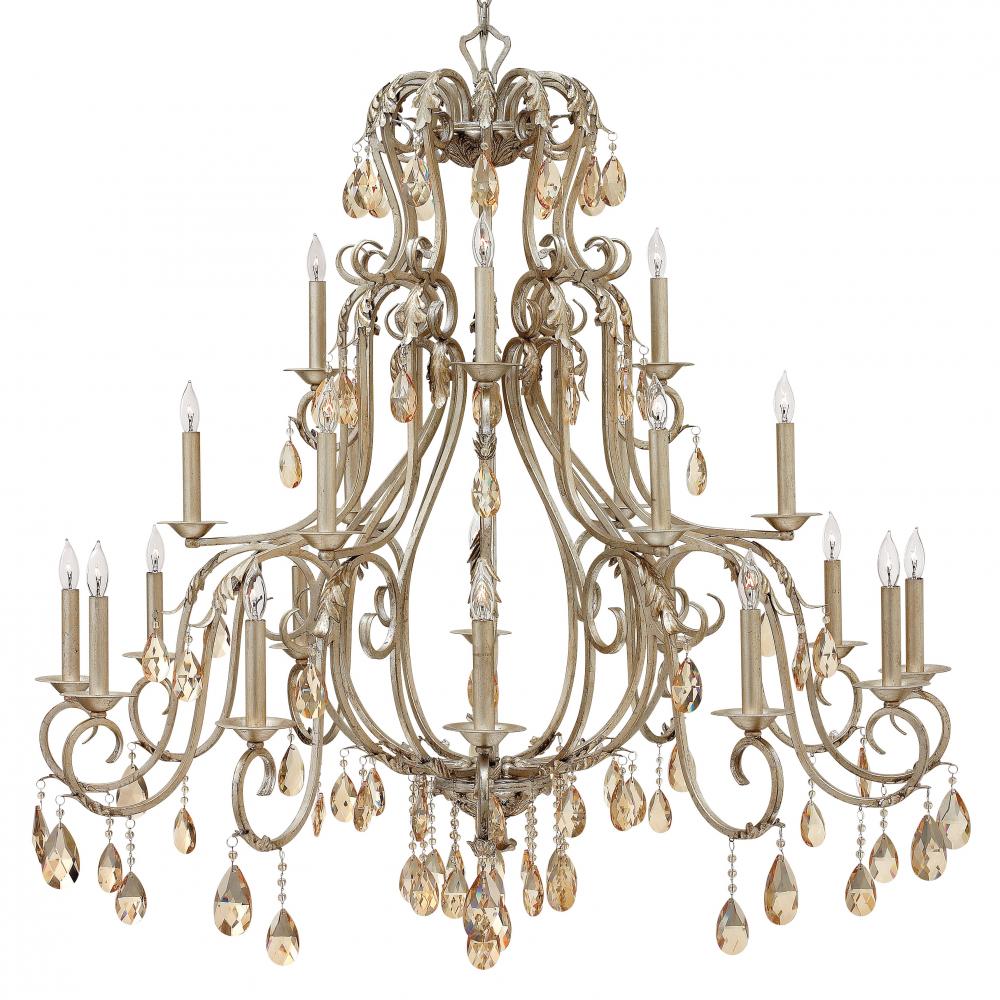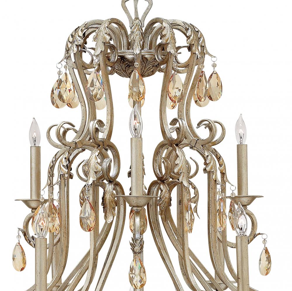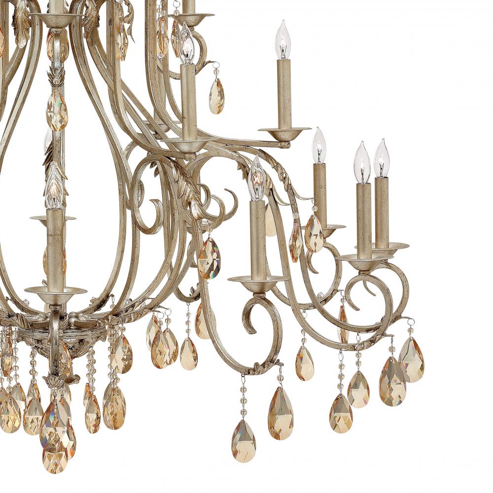 Carlton's elegant petite candelabra iron design, finished in authentic Silver Leaf, makes a sophisticated statement with luxurious amber pearl crystals, optional translucent organza shade and ornate details.