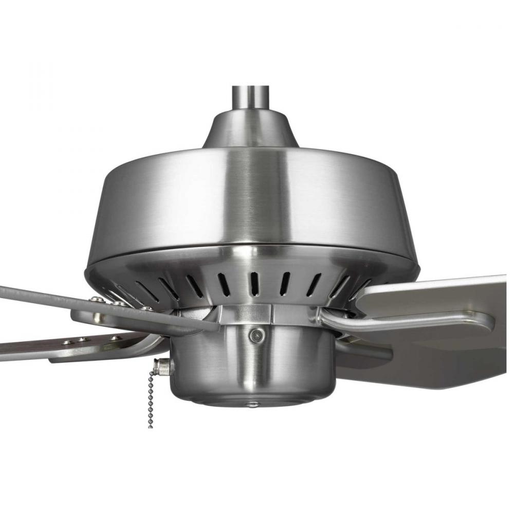 Enhance your home with the perfect mix of form and function with the 32 in four-blade Drift fan. Ideal for smaller spaces, such as closets, mudrooms and laundry rooms, Drift features a powerful motor and a steep pitch to circulate a lot of air within a smaller space. Drift offers a dual mount system and a three-speed pull chain fan switch, as well as an on/off pull chain switch to operate the light. Brushed Nickel finish.