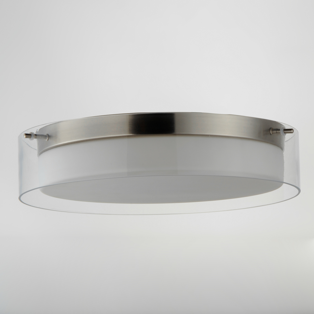 A double glass shade advances the double shade design with the integration of sleek and modern integration of design. Satin White inner glass shades are surrounded by a transparent Clear outer glass, available in your choice of Satin Nickel or Black finish