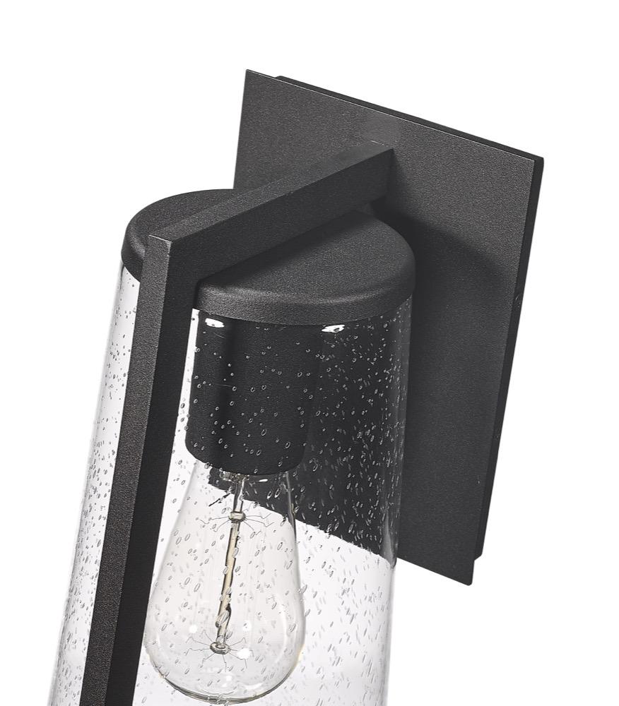 The Portofino collection, designed by Kevin Kraemer, would be a stunning addition to any home. The black frame holds a clear cone shaped seeded glass. This model comes with a 25 year warranty on corrosion and 5 year warranty on paint defects. (Smaller model also available)
