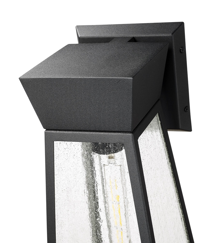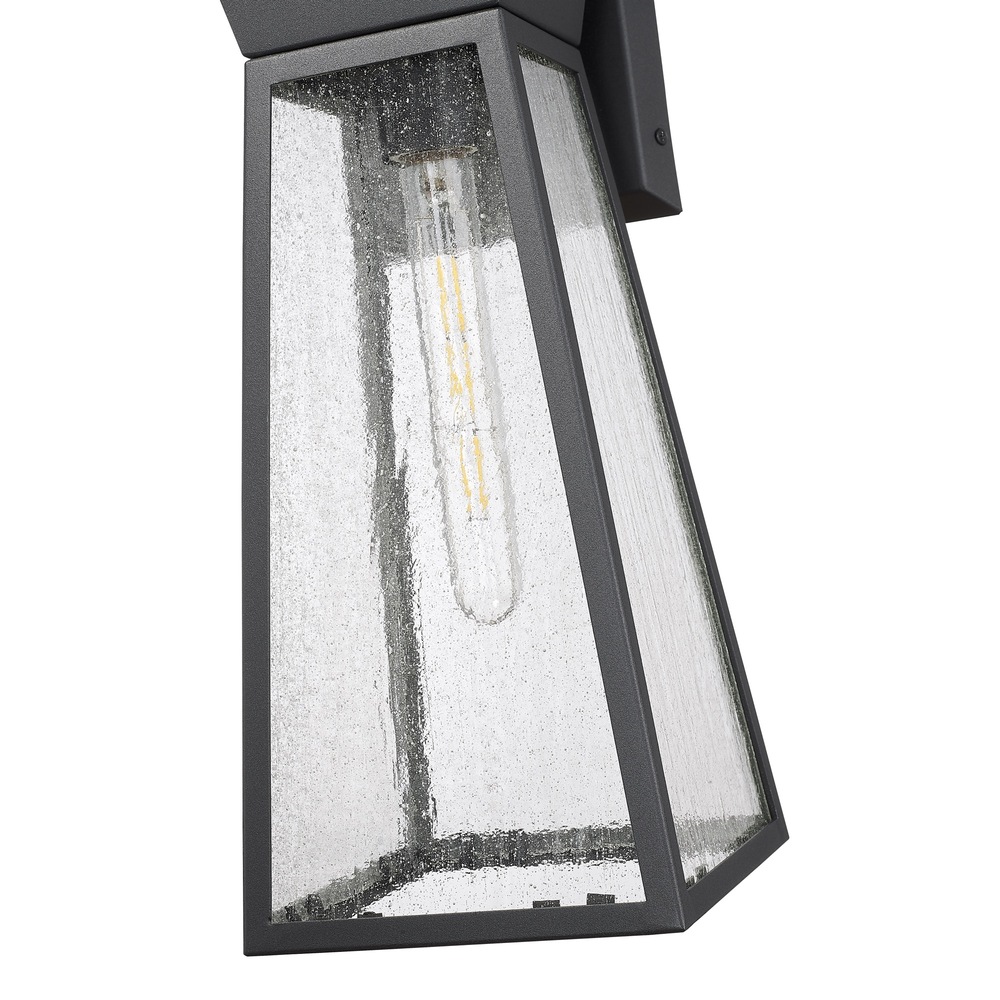 The Lucian collection, designed by Kevin Kraemer, is a distinctive outdoor lantern series renowned for its distinct architecture. These lanterns showcase a rich black finish complemented by the use of lightly clear seeded glassware, adding both style and texture to outdoor spaces. This product is backed by a 25 year warranty on corrosion and 5 year warranty on paint defects. Medium size wall sconce shown (smaller and larger sizes also available)