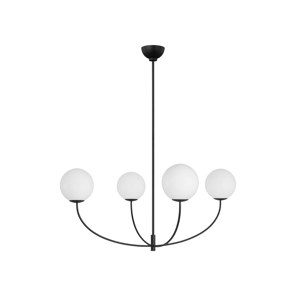 Originally inspired by kinetic sculpture, the Galassia chandelier perfectly balances glass globes on an elongated frame, which gives it a contemporary look. The white glass casts a soft, welcoming glow over space, while the elongated frame works particularly well in high-ceiling rooms.