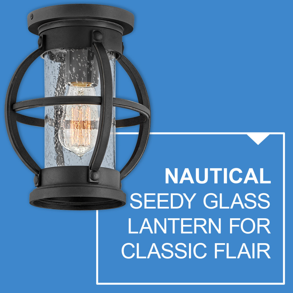 Inspired by the traditional onion-style lantern, Chatham boasts a flair of nautical charm. Featuring a refined top scroll arm for a more casual and transitional style, it encompasses a gleaming, nautical seedy glass.Chatham is designed to withstand even the harshest elements. It is available in a Museum Black finish that is resistant to rust and corrosion with a 5-year warranty.