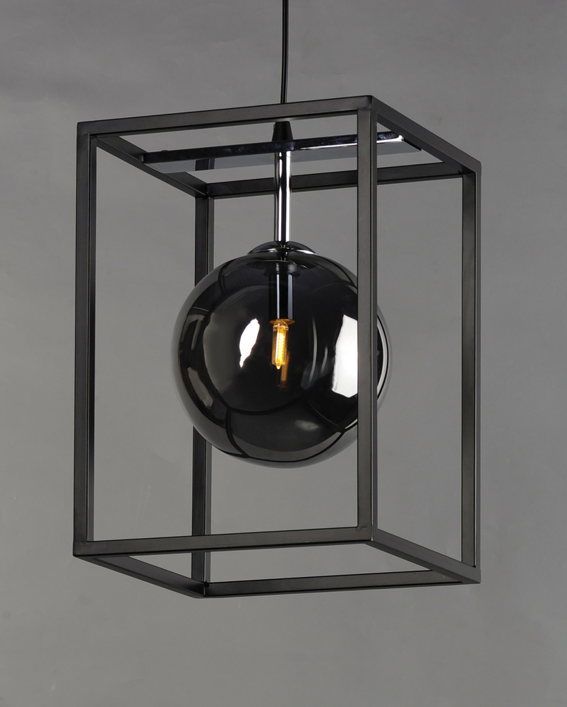 A minimalist design featuring a metal frame of Black round glass balls in your choice of Mirror Smoke for a contemporary style or Champagne for more transitional decors. The value of this collection is increased by the inclusion of LED bulbs.