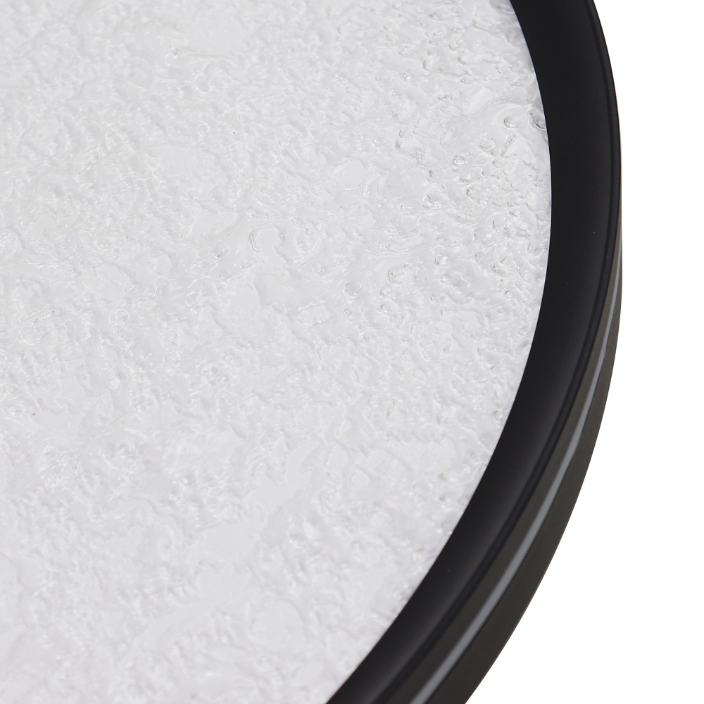 This LED flushmount from the Luna Collection is a celestial masterpiece, blending modern elegance with cosmic allure. Its black frame cradles a textured “moon crater” lens, through which a soft, glittering glow emanates, evoking the magic of starlit skies. A subtle side cutout allows ambient light to gracefully spill onto the ceiling, creating a halo-like effect that transforms any space into a serene sanctuary. The frame of this flushmount is black.