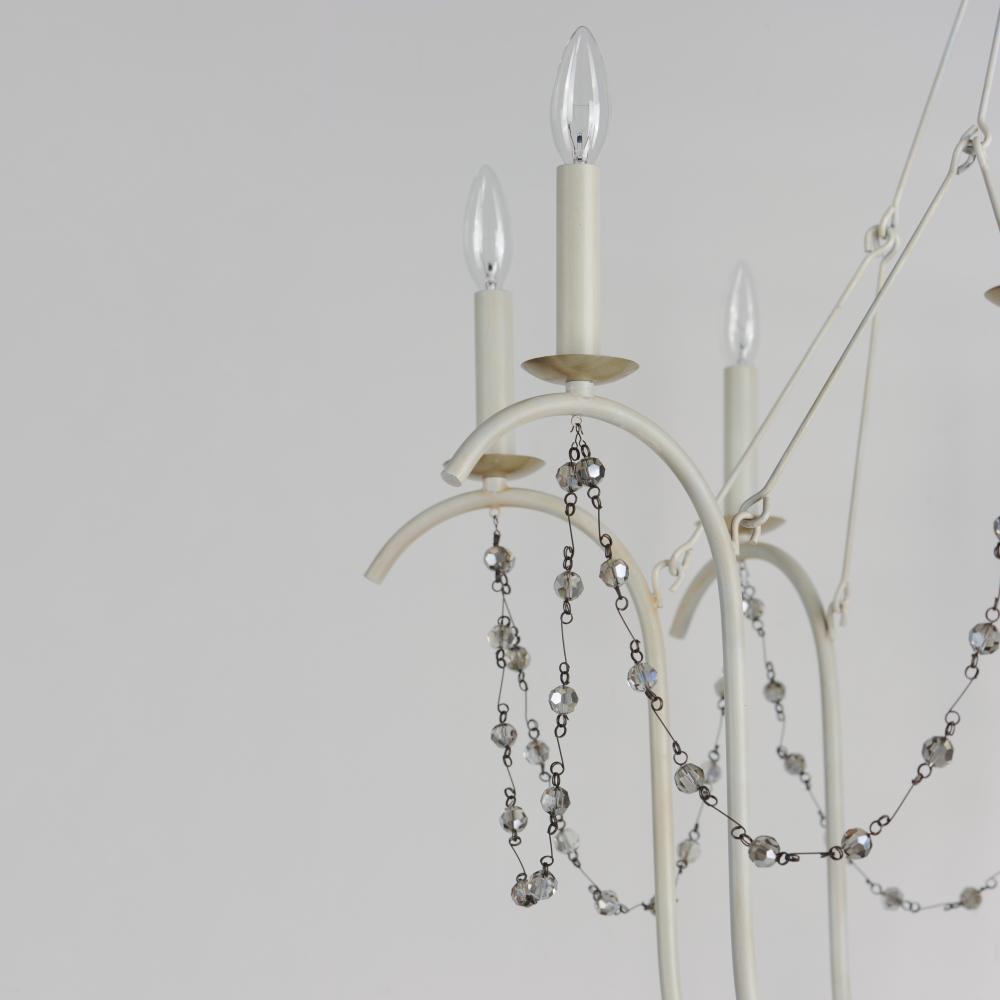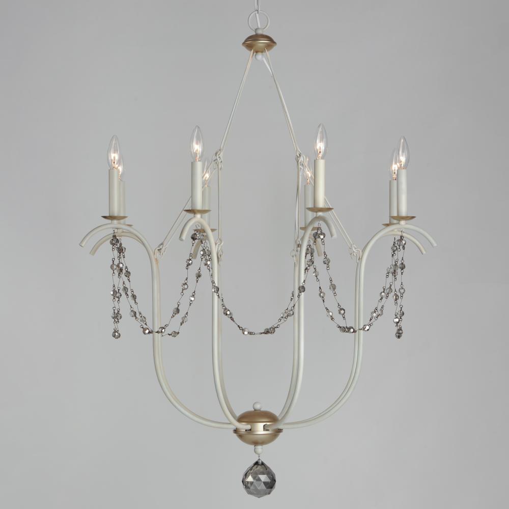 This series draws inspiration from regal agrarian manors, delivering a statement in its scale and sophisticated finishes. Designed in operatic proportions, the bottom chandelier assembly features swollen curves hand painted in a choice of Ecru White or Gol