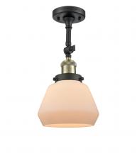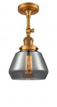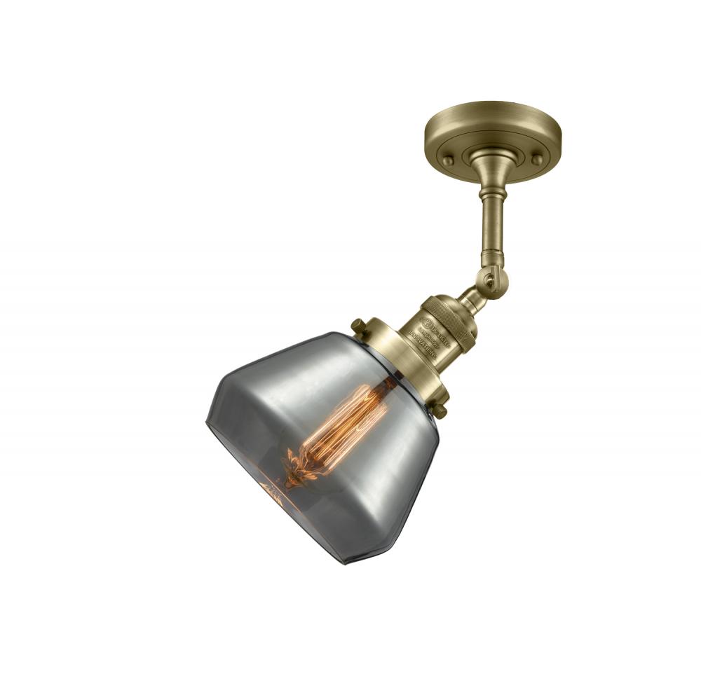 Fulton - 1 Light - 7 inch - Antique Brass - Light Smoke Shade - Adjustable Semi-Flush Mount