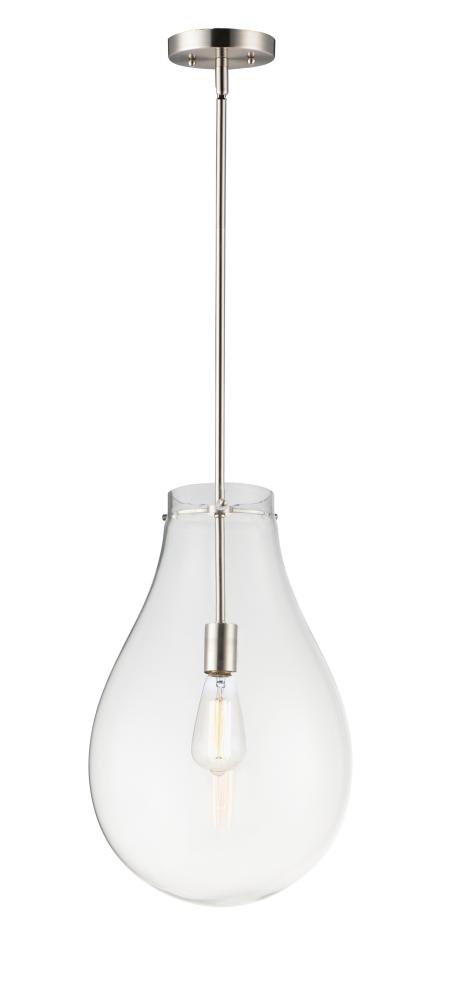 The crystal clear, large-scale glass pendants attest to the craft of hand-blown glass with their impressive scale. These hand crafted glass pendants embody simplicity and minimalism. Accented with Satin Nickel hardware, the style pairs well in a variety of
