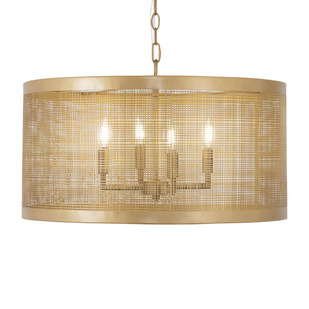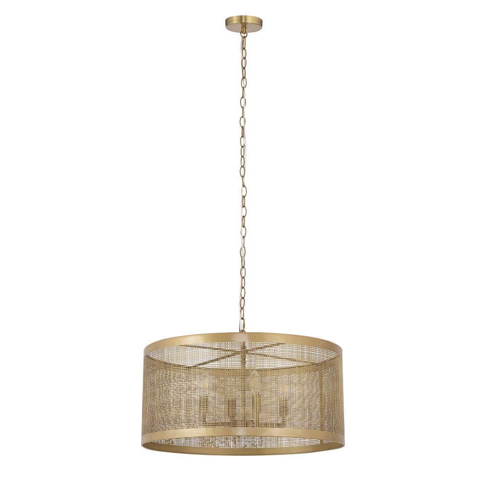A crosshatching etched pattern on metal shades finished in Gold or Matte Black powder coated finishes. Available in multiple sizes of pendants and matching ADA compliant wall sconce.