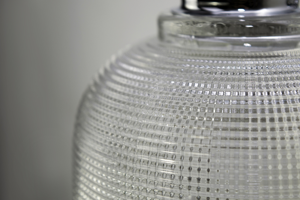 Crisp and clean define this new collection with Polished Chrome frames and Clear, prismatic shades. The geometric pattern of the glass diffuses the glare while providing ample light.