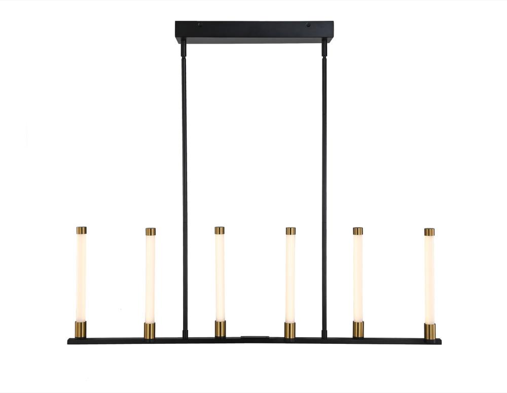 The Infiniti Collection by Steven Sabados of the S&C design firm, is stunning and quite unique. The frame is a matte black and the candle sticks are illuminated by bright energy efficient LED which have brass accents on both ends. Linear island model shown.