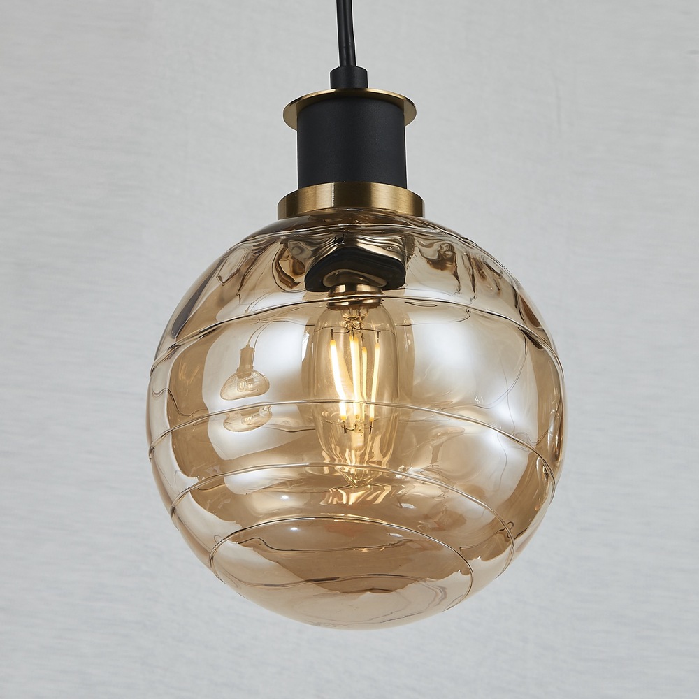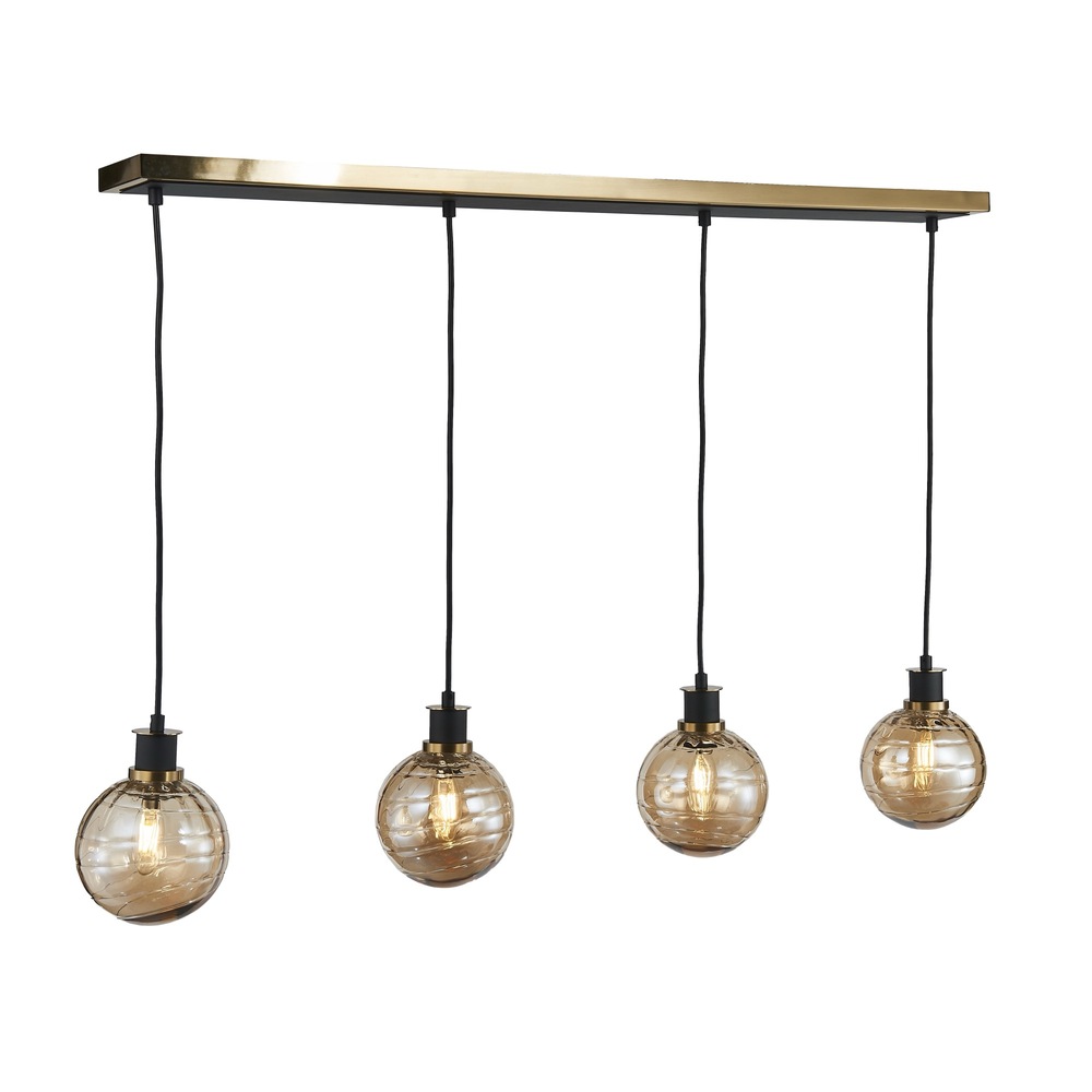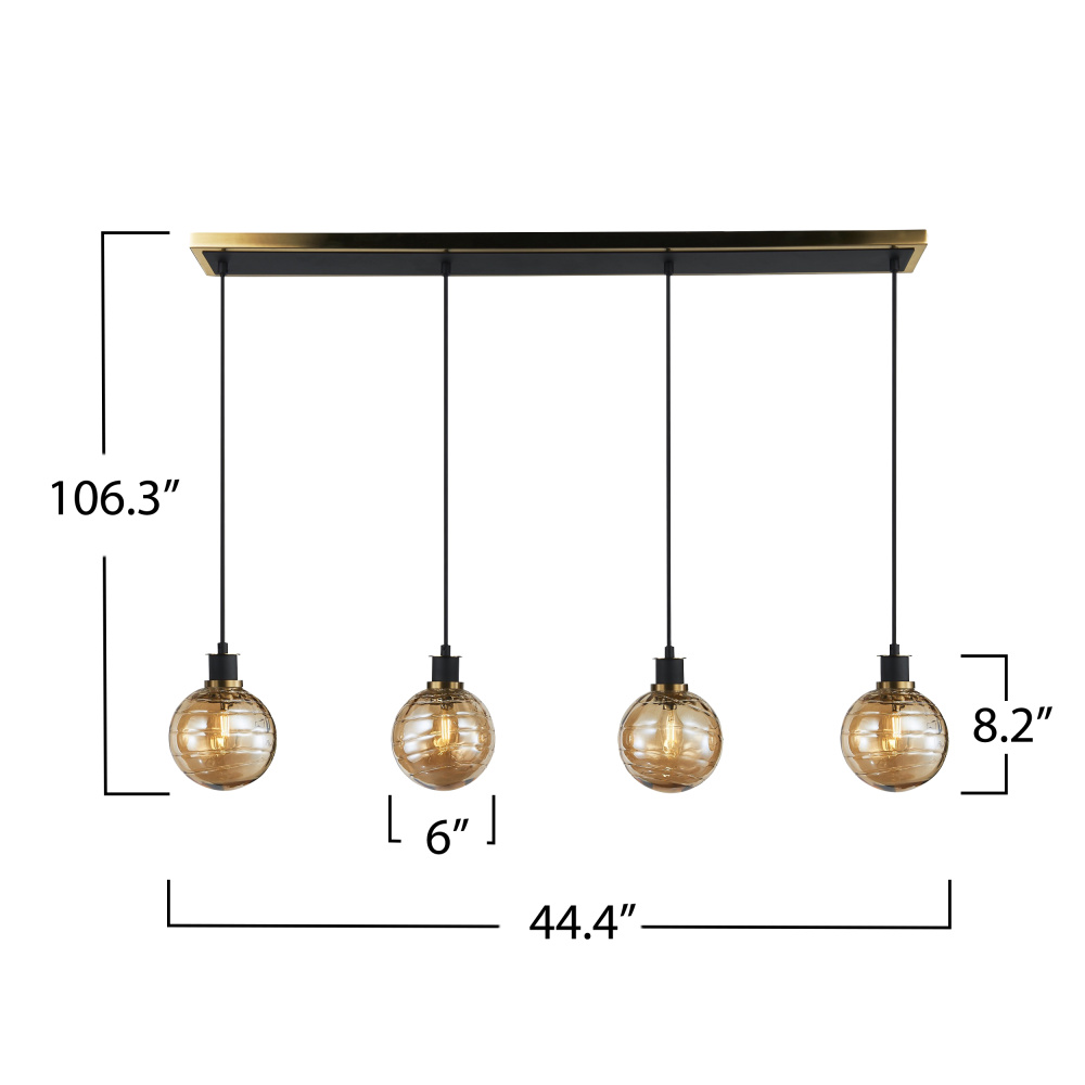 The Gem Collection with champagne glassware has a rich, translucent amber hue with a high level of clarity, allowing light to pass through while casting a warm, golden tone. This model is the linear island 4 lite chandelier.
