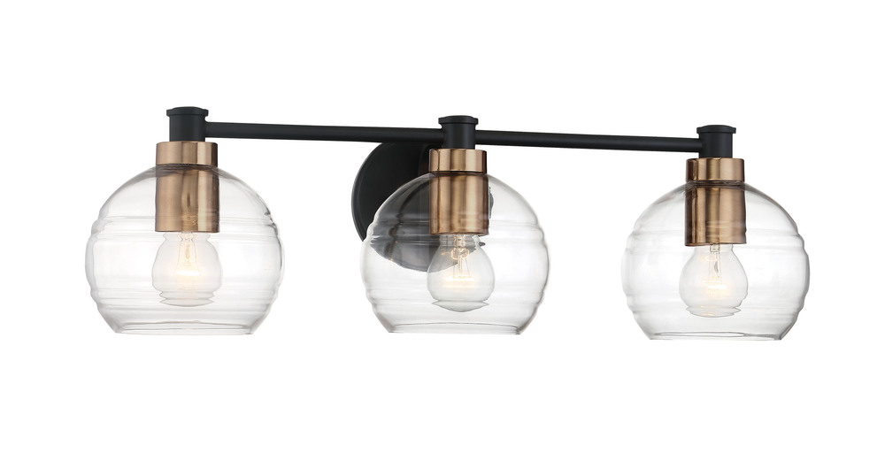 3 Light Bath in Sand Coal and Natural Brushed Brass Finish with Clear Banded Glass
