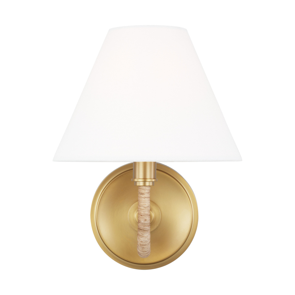 The sinuous forms of Jean Royere inspire the Laguna series, showcases a tight woven design that transitions to the shade. The natural woven wrapped frame of each piece in this series is elevated by the metal details adorning them. The curves and angles of the Laguna series bring modern flair to this sconce, while the white linen shades underscore its timeless elegance.