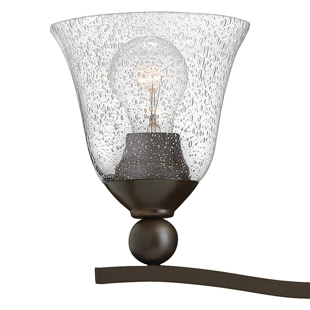 The graceful lines of Bolla create a soft elegance, while heavy cast ball transition details add to its innovative style. The strong proportions of the design contrast with the subtle bell shaped glass, combining both traditional and modern details.