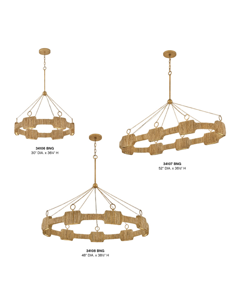 Raffi's coastal bohemian vibe is balanced by its distinctively modern shape. A unique LED design offers abundant light, while a slim frame hand-wrapped in natural reeds provides unexpected texture. Bold Carbon Black or Burnished Gold finishes perfectly complement any color palette.