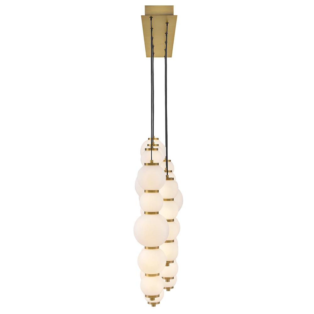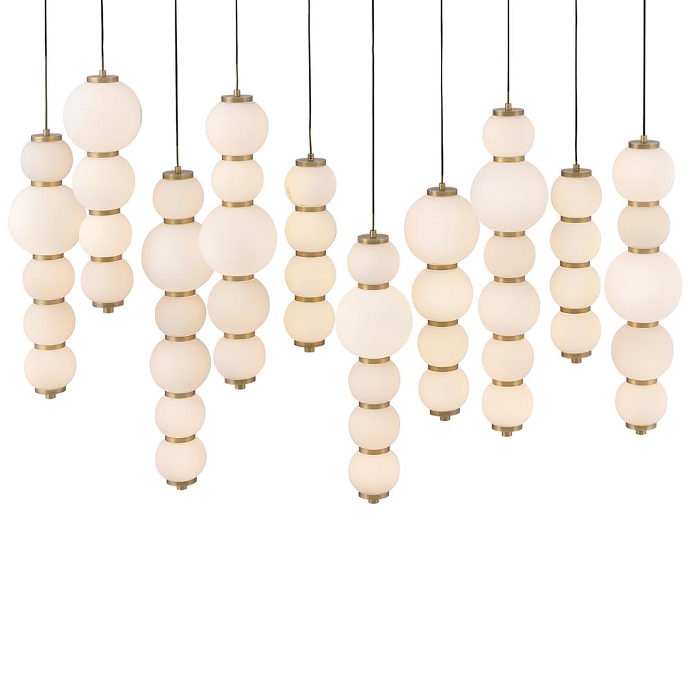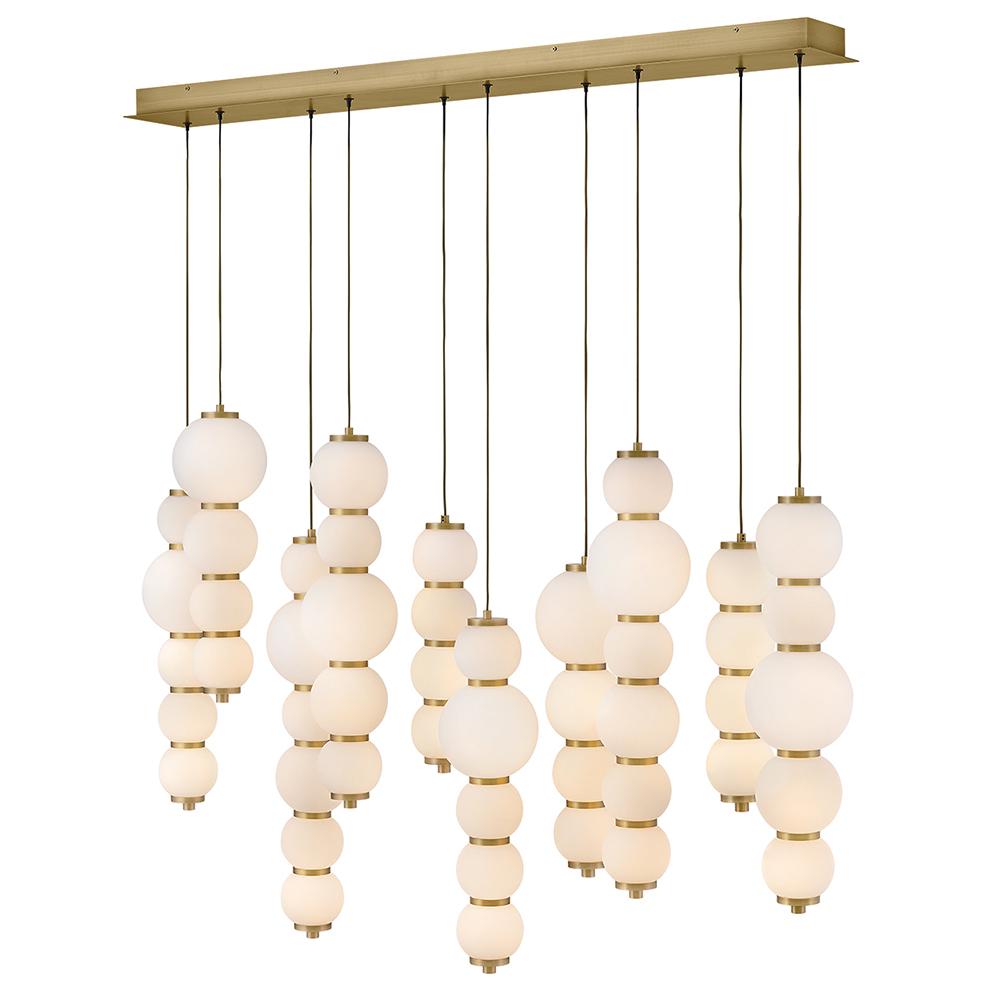 Inspired by the enduring allure of pearl jewelry, Trigo’s softly cascading silhouette makes a dramatic yet elegant statement. Glowing etched opal glass globes of varying sizes create a visual rhythm and organic flow that echo the natural imperfections and unique beauty found in genuine pearls. Differences between each globe add depth and movement, combining classic beauty with modern coastal design and offering a harmonious blend of tradition and innovation.