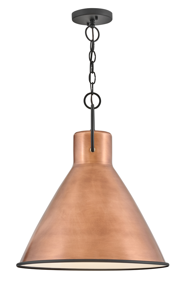 The profile is simple, hardworking and meant to reflect the farmhouse style it complements so well. A metal shade in a variety of finishes, featuring a bottom ring and an oversized loop in Distressed Black. Wiring is threaded through the loop instead of being exposed, which ensures the look remains clean, casual and tasteful.