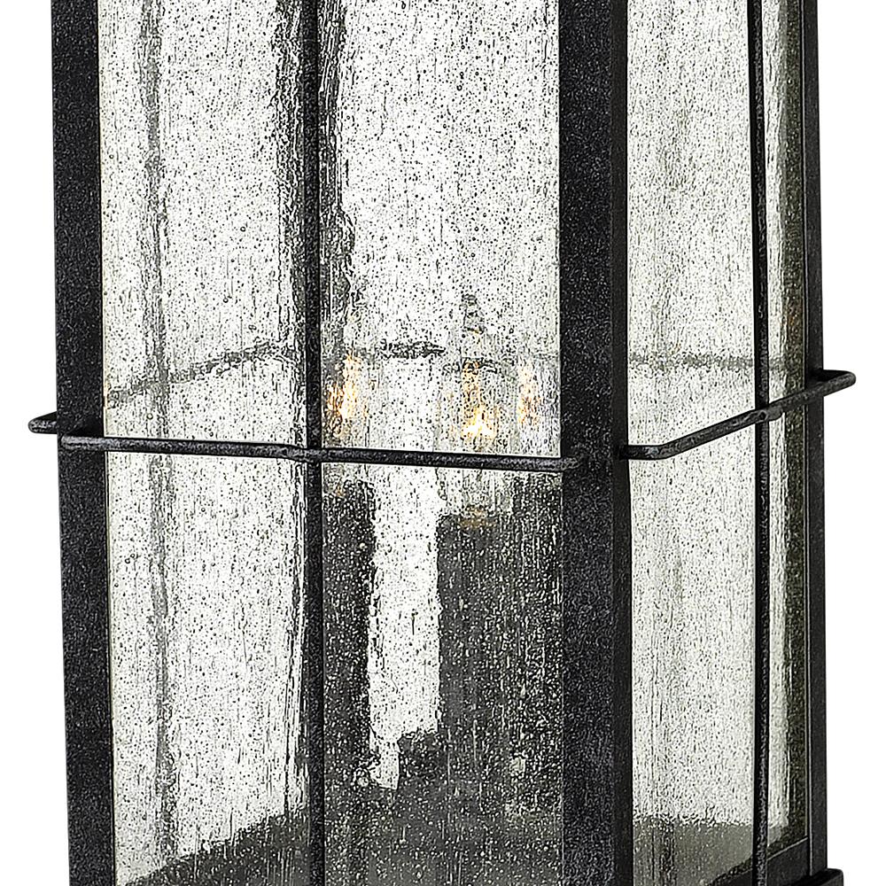 Bingham’s traditional style recalls a turn-of-the-century gas light reproduction. The vintage look is nautical in nature and recognizes Hinkley’s origins on the shores of Lake Erie. The aluminum construction features clear seedy glass and a Greystone or Sienna finish, while candelabra bulbing completes the authentic style.