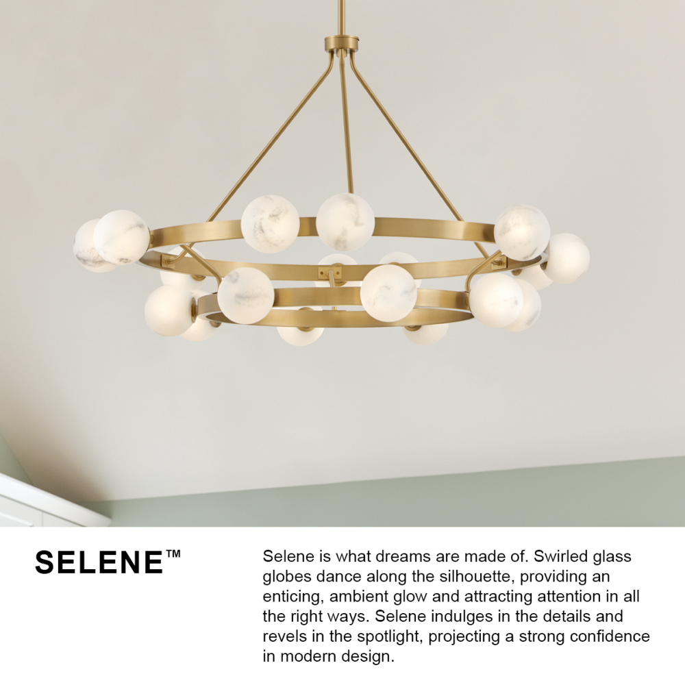 Selene is what dreams are made of. Swirled glass globes dance along the silhouette, providing an enticing, ambient glow and attracting attention in all the right ways. Selene indulges in the details and revels in the spotlight, projecting a strong confidence in modern design.