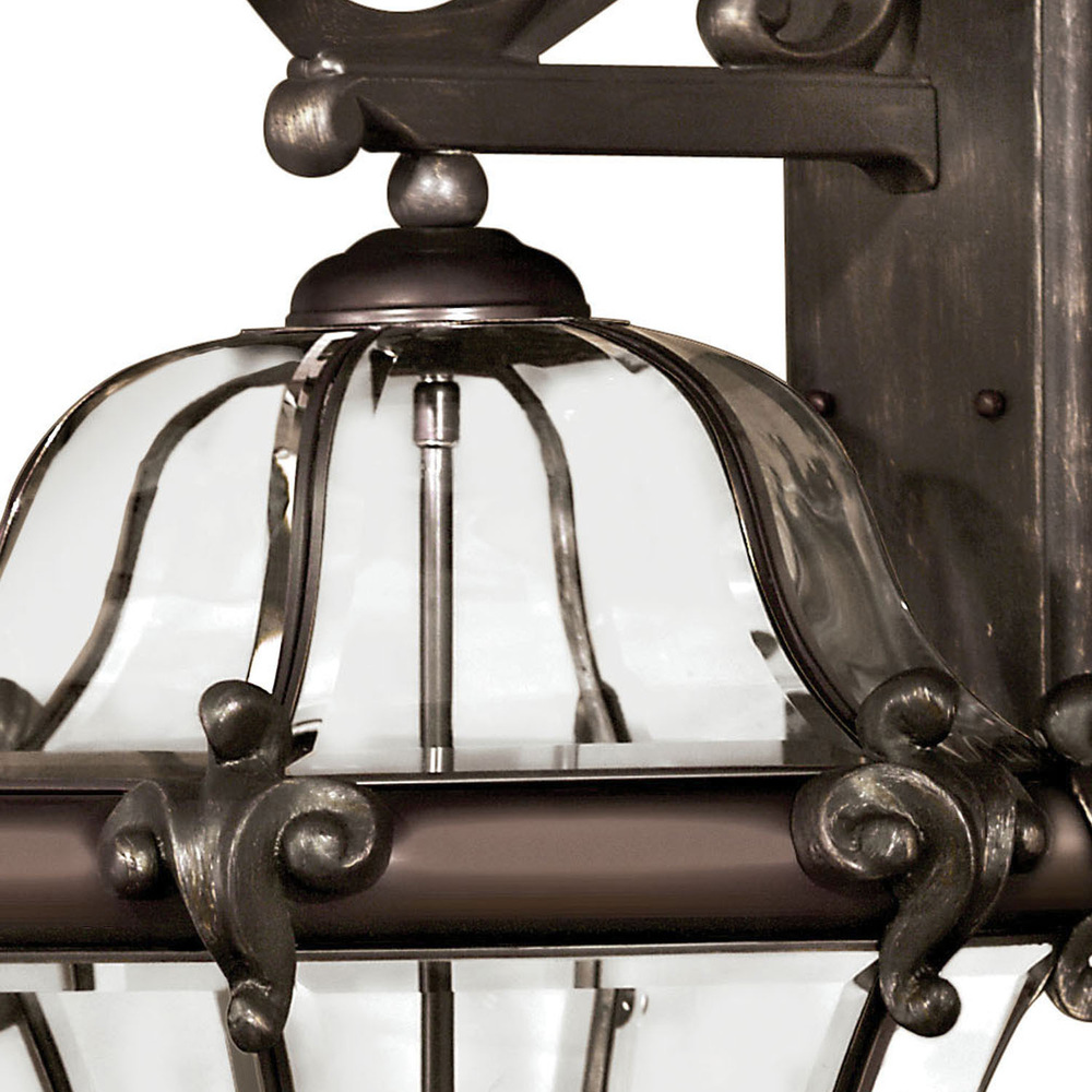 San Clemente’s elegant shape takes center stage with clear bent, beveled and bound glass as the central design element. Its cast aluminum and brass construction complemented by exquisite cast ornamental detailing completes its captivating appeal.