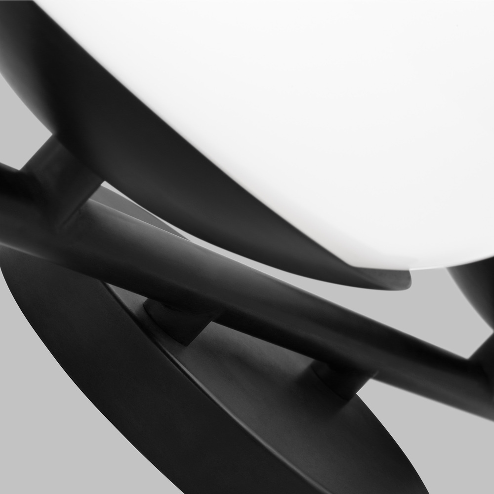 The Lune mid-century modern collection from Ellen DeGeneres is offered in two finishes including Aged Iron and Burnished Brass. The symmetrical abstract of the silhouette is deceptively simple with your attention being drawn to the milk glass shade featuring no visible hardware. We are expanding this floor lamp to a full series and adding an Aged Iron finish option. Lune has a simple yet sophisticated design. The slender metal frame features Aged Iron or Burnished Brass arms that are complete with a white glass globe at each end. The brass accents handsomely complement the black or brass frame to create a mid-century modern vibe.