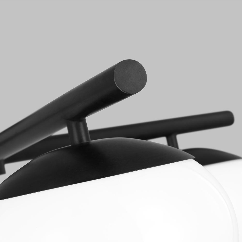 The Lune mid-century modern collection from Ellen DeGeneres is offered in two finishes including Aged Iron and Burnished Brass. The symmetrical abstract of the silhouette is deceptively simple with your attention being drawn to the milk glass shade featuring no visible hardware. We are expanding this floor lamp to a full series and adding an Aged Iron finish option. Lune has a simple yet sophisticated design. The slender metal frame features Aged Iron or Burnished Brass arms that are complete with a white glass globe at each end. The brass accents handsomely complement the black or brass frame to create a mid-century modern vibe.