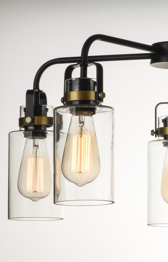 Modern farmhouse design requires vintage looks with an updated style. This collection fits this definition with minimalistic styled frames of Bronze with Gold accents that cradle Clear mason jar shaped glass. Add vintage bulbs for farmhouse appeal or tubul