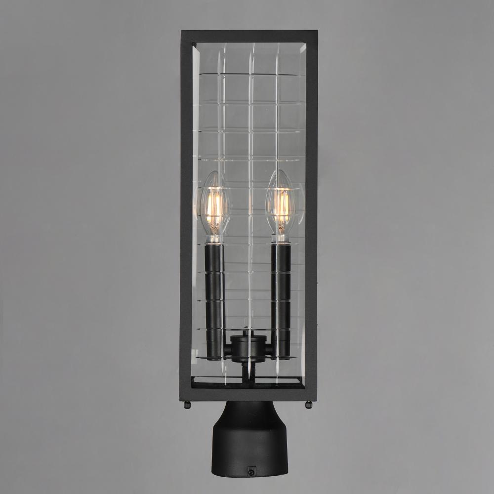 A simple square-framed lantern features deep etched squares on Clear glass, creating a captivating array of refracted light. Constructed from die-cast aluminum and finished in Matte Black, the design blends classic elements with a refreshing, modern approa