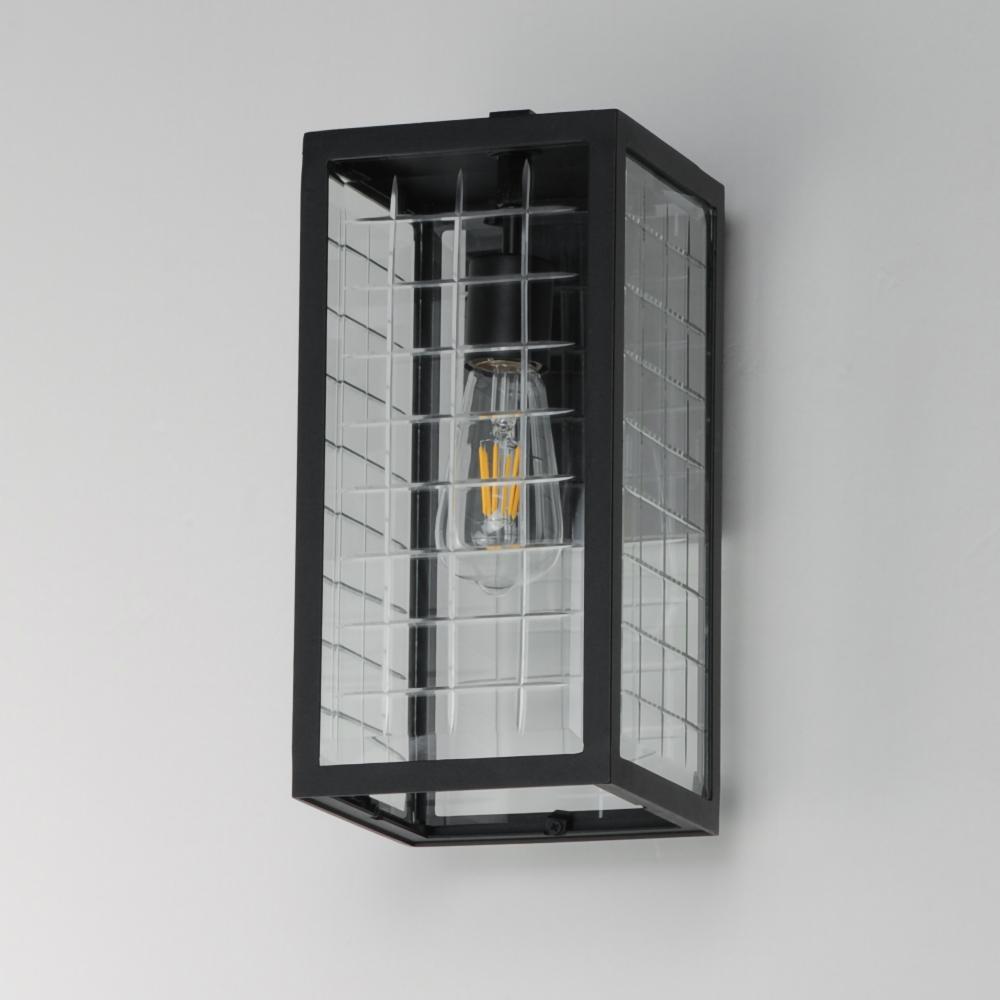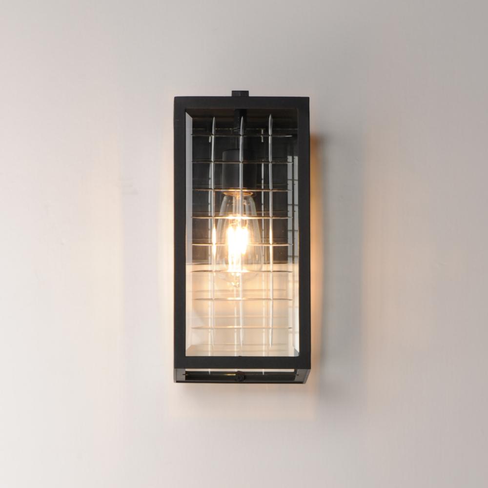 A simple square-framed lantern features deep etched squares on Clear glass, creating a captivating array of refracted light. Constructed from die-cast aluminum and finished in Matte Black, the design blends classic elements with a refreshing, modern approa