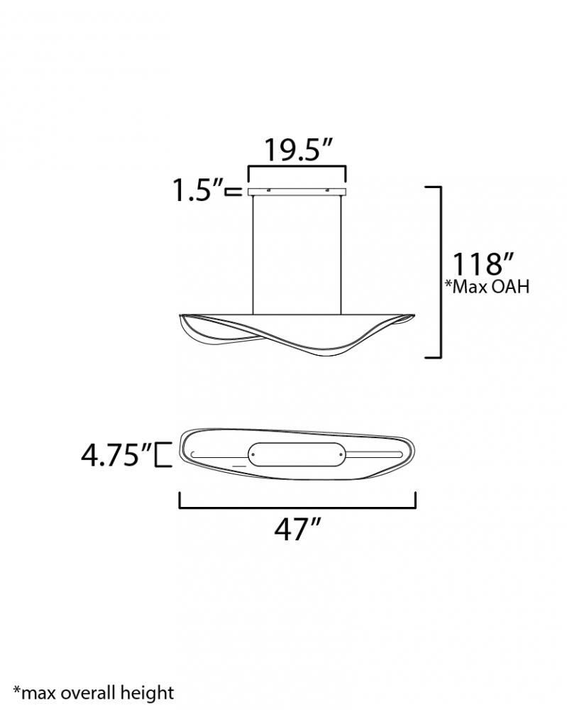 An undulating shape softly curls along its center to create an organic form constructed of a single panel of transparent acrylic. Further enhancing the form is the captivating effect of the frosted band around the borders and the patterned etching on the a