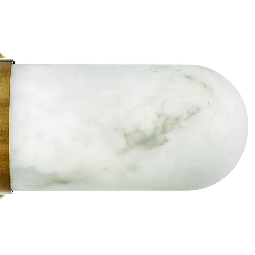 Ibiza provides unparalleled, high-end style with its linear silhouette. The oblong design is finished with rounded edges to provide a touch of the unexpected. Faux alabaster glass centered with a thick metal band brings modern glam while staying rooted in traditional elegance.