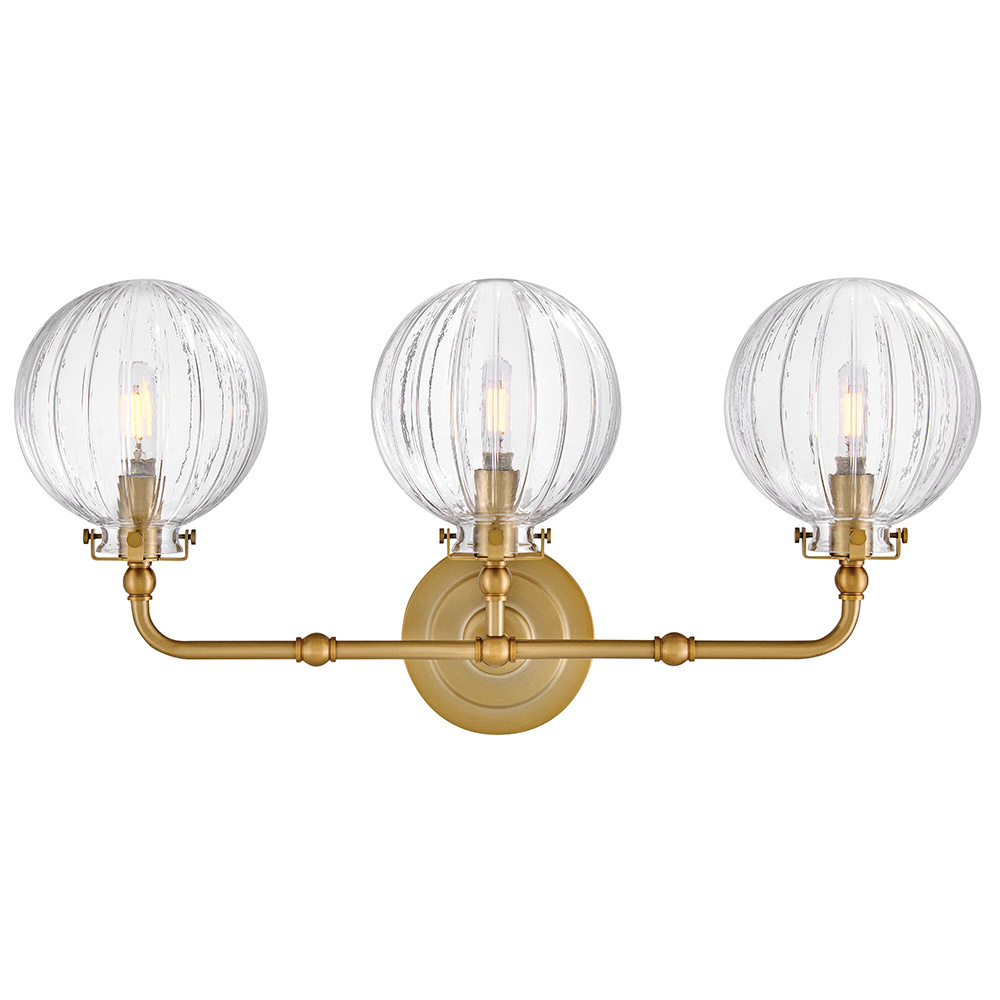 Combining vintage charm with practical design, Helene’s graceful, ribbed glass globes cast beautifully refracted light. Delicate detailing and unique knobs securing each shade are complemented by a rich Lacquered Brass finish to perfectly accentuate your space.