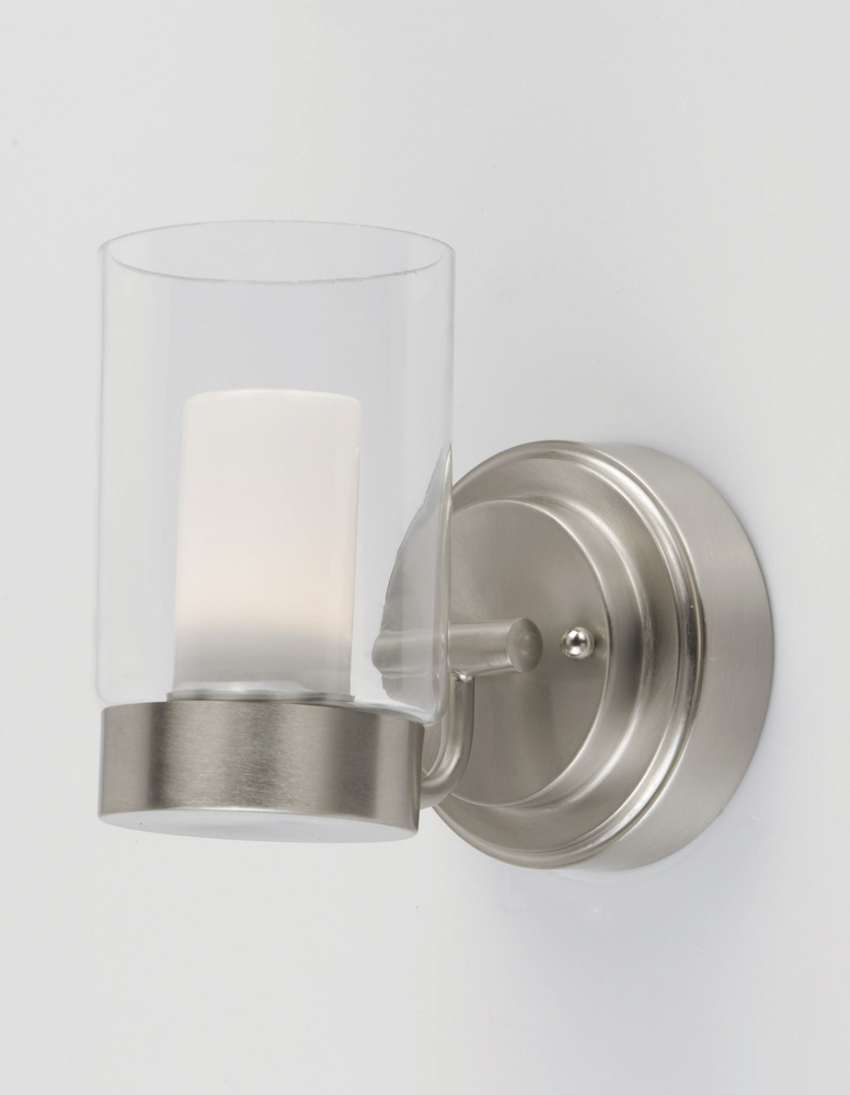 A contemporary design featuring a Satin Nickel frame supporting Clear cylinder glass shades with Frost interior diffusers all powered with energy efficient LED technology. Finally LED technology at an affordable price.