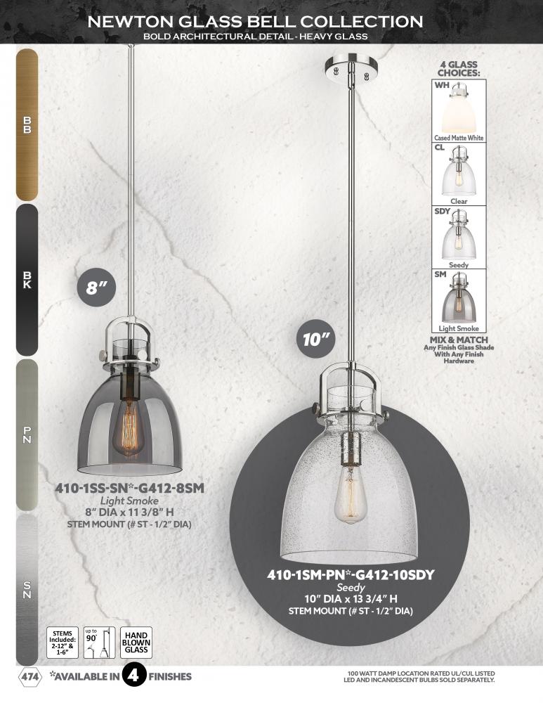 The Newton Bell is a modern industrial collection that incorporates exceptional architectural details and classic bell shaped shade. The delicately curved glass or metal shade complements the clean lines of this restoration inspired line of fixtures.