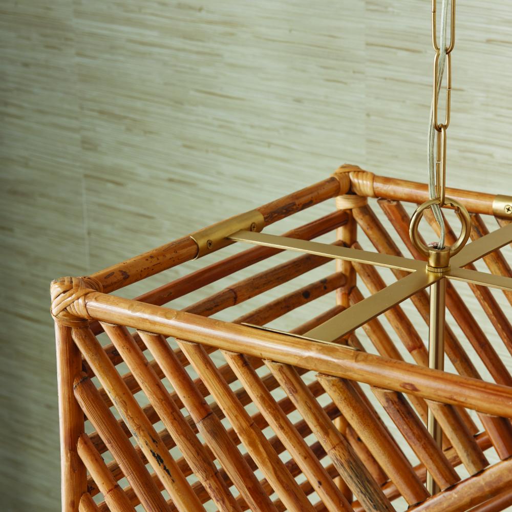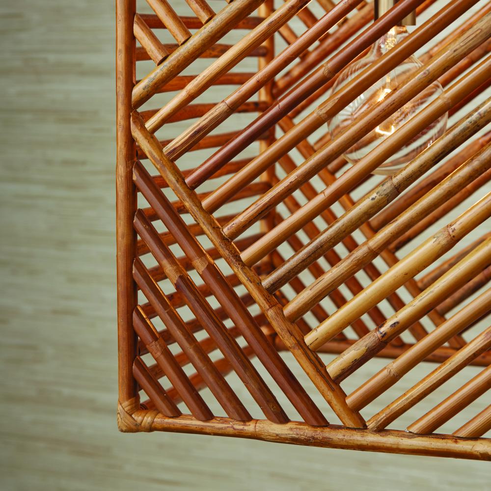 17"W x 28"H 1-Light Foyer Pendant in Matte Brass with Artisan Crafted Natural Bamboo