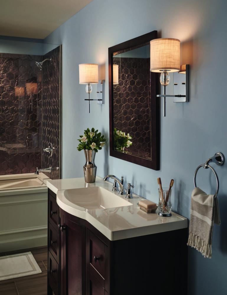 Ideal for a bathroom, dining room, hallway, or foyer;Perfect for coastal, luxe, modern, and transitional style settings;Crisp polished chrome finish;Clean off-white textured fabric shade;Includes installation instructions and mounting hardware;Use 1 medium