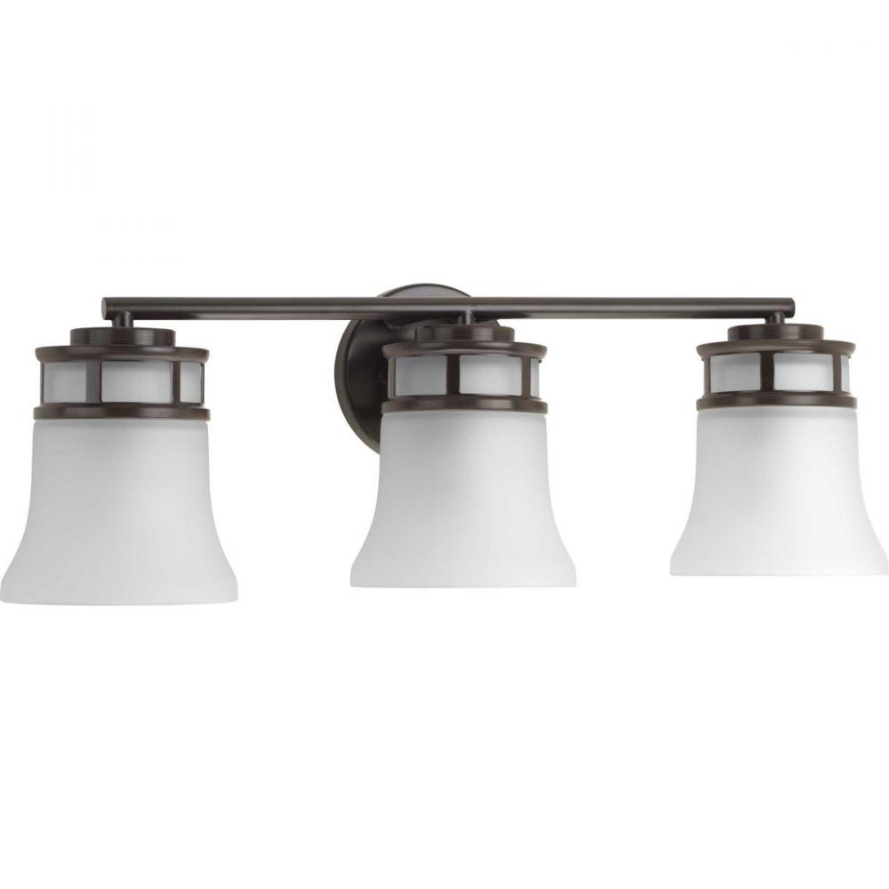 Ideal for a bathroom;Perfect for coastal, craftsman, modern, and modern craftsman style settings;Handsome antique bronze finish;Elegant etched glass shades;Mount the light fixture facing up or down;Use 3 medium base bulbs that are sold separately (100 W ma