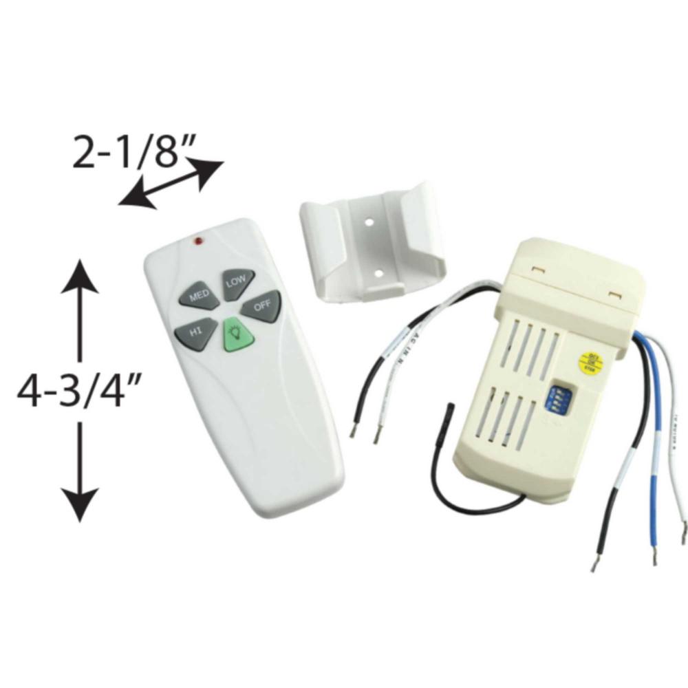 receiver fits in fan canopy, hand-held remote with wall cradle