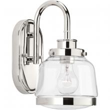 Ideal for a bathroom, dining room, hallway, or foyer;Perfect for farmhouse and vintage electric style settings;Handsome antique bronze finish;Crisp clear glass shade;Mount the light fixture facing up or down;Use 1 medium base bulb that is sold separately (