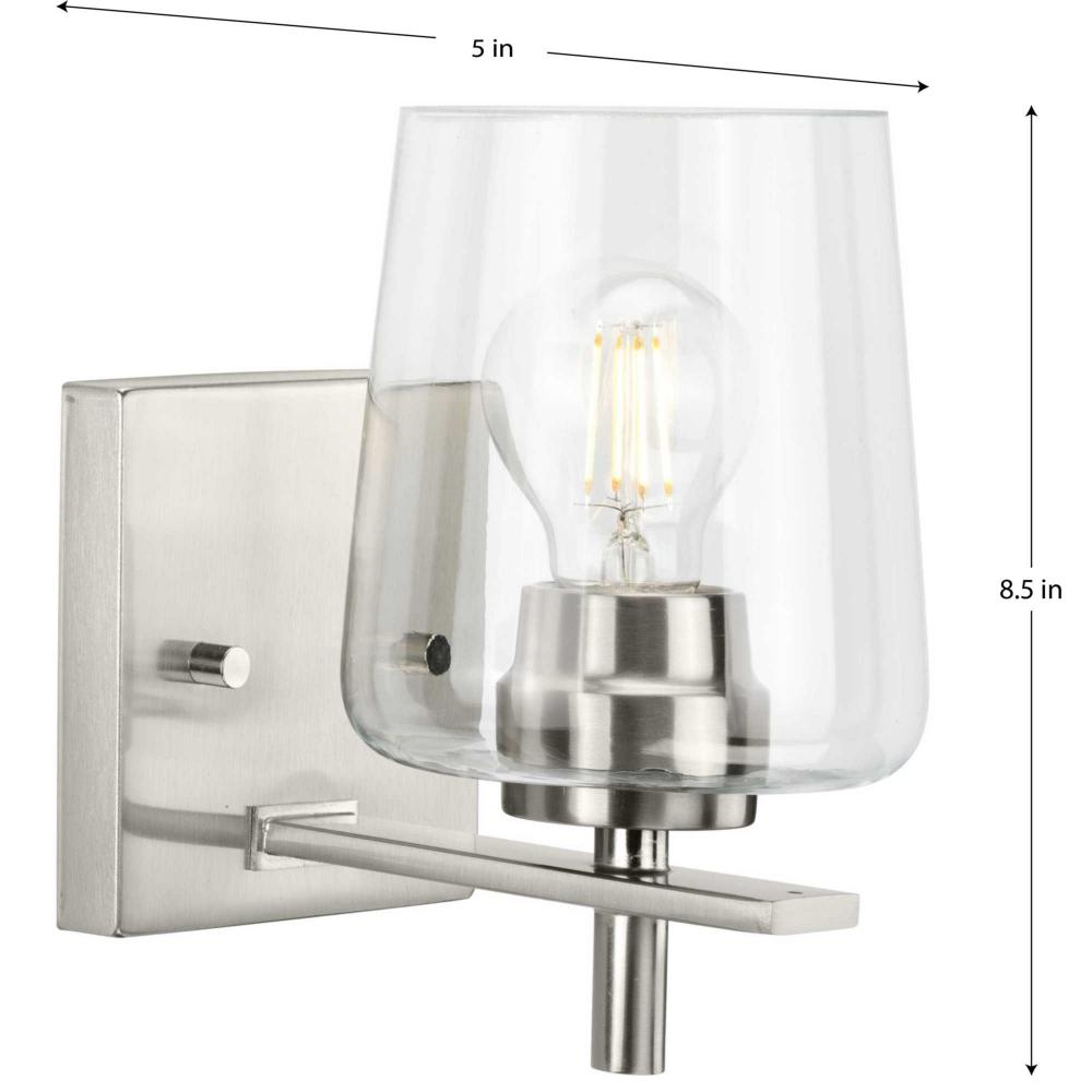 Timeless details create an enduring silhouette making this elegant sconce perfect for the bathroom, bedroom, hallway and foyer;Its beautiful clean design complements new traditional and transitional interiors;Clear glass shades provide a contemporary take